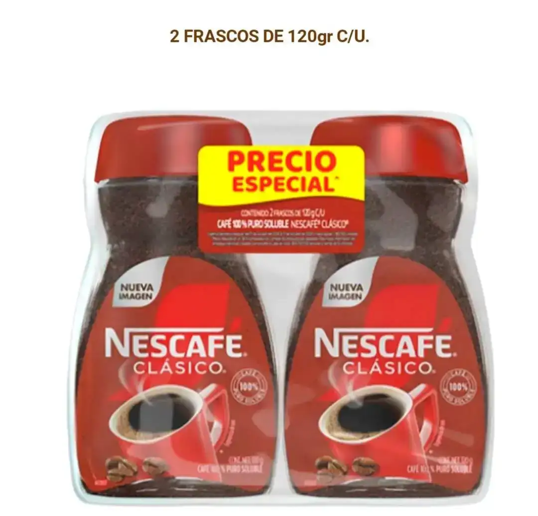 Nescafé Clásico. 2 Frascos de 120gr C/U.